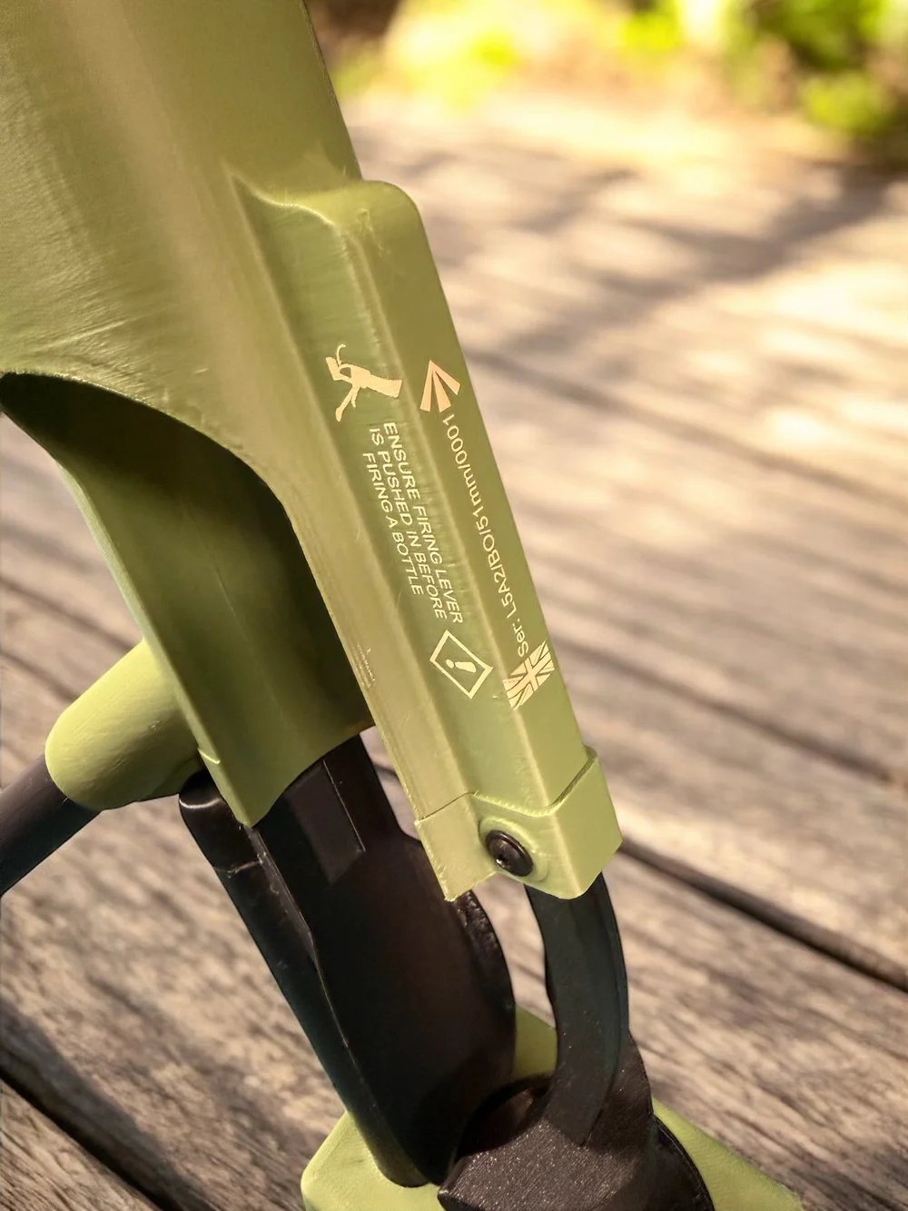 The only item launched is the bottle cap. Use responsibly and keep clear of faces and fragile items.